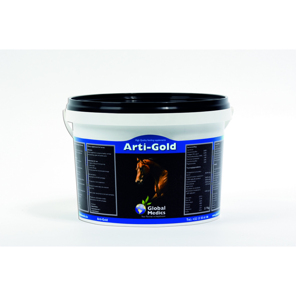 Voedingssupplement voor paarden voor het behoud van soepele en gezonde gewrichten. Arti-Gold Global Medics bevordert het kraakbeenherstel en de gewrichtssmering.